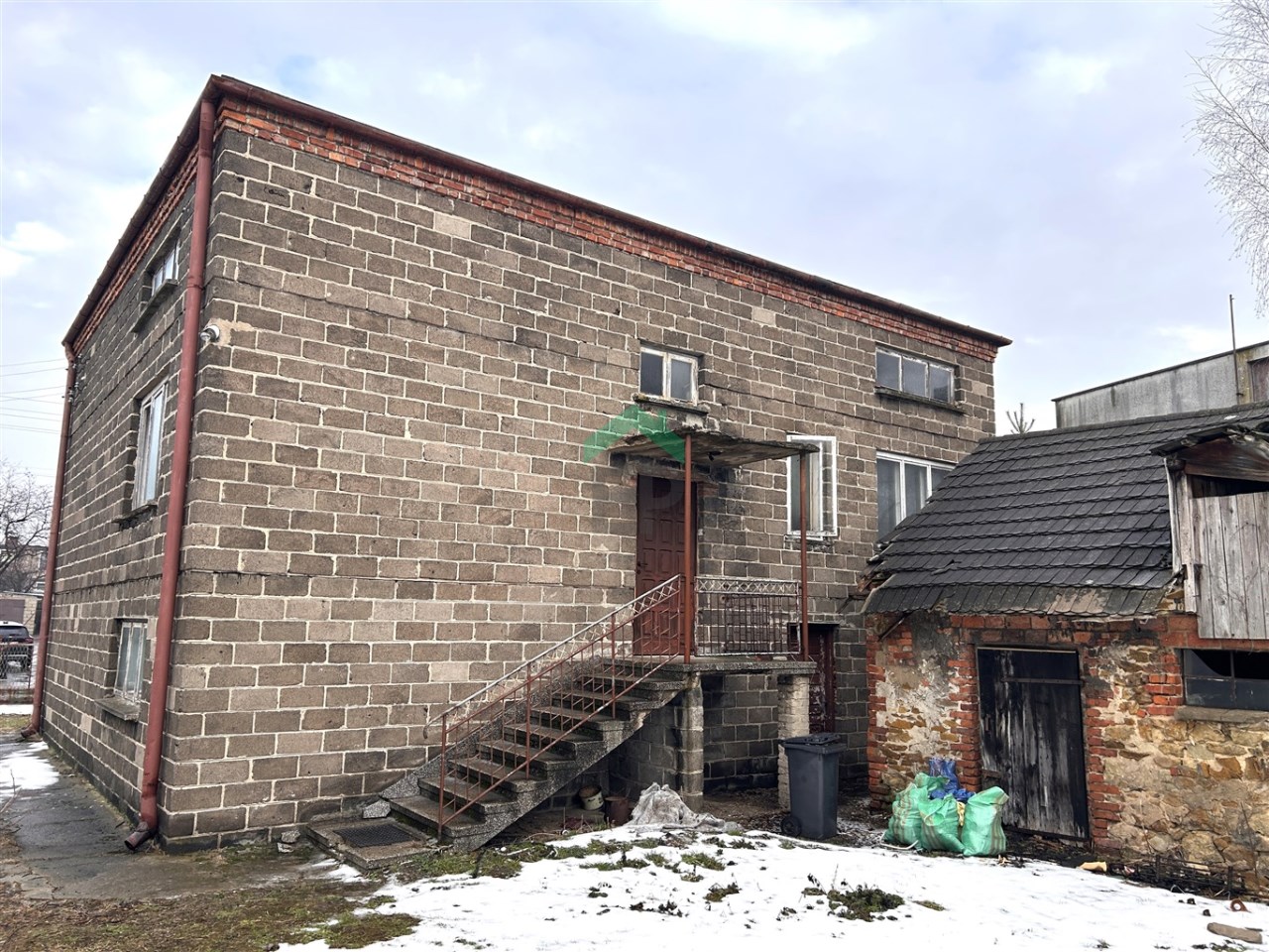 dom zbudowany z pustaka żużlowego i cegły