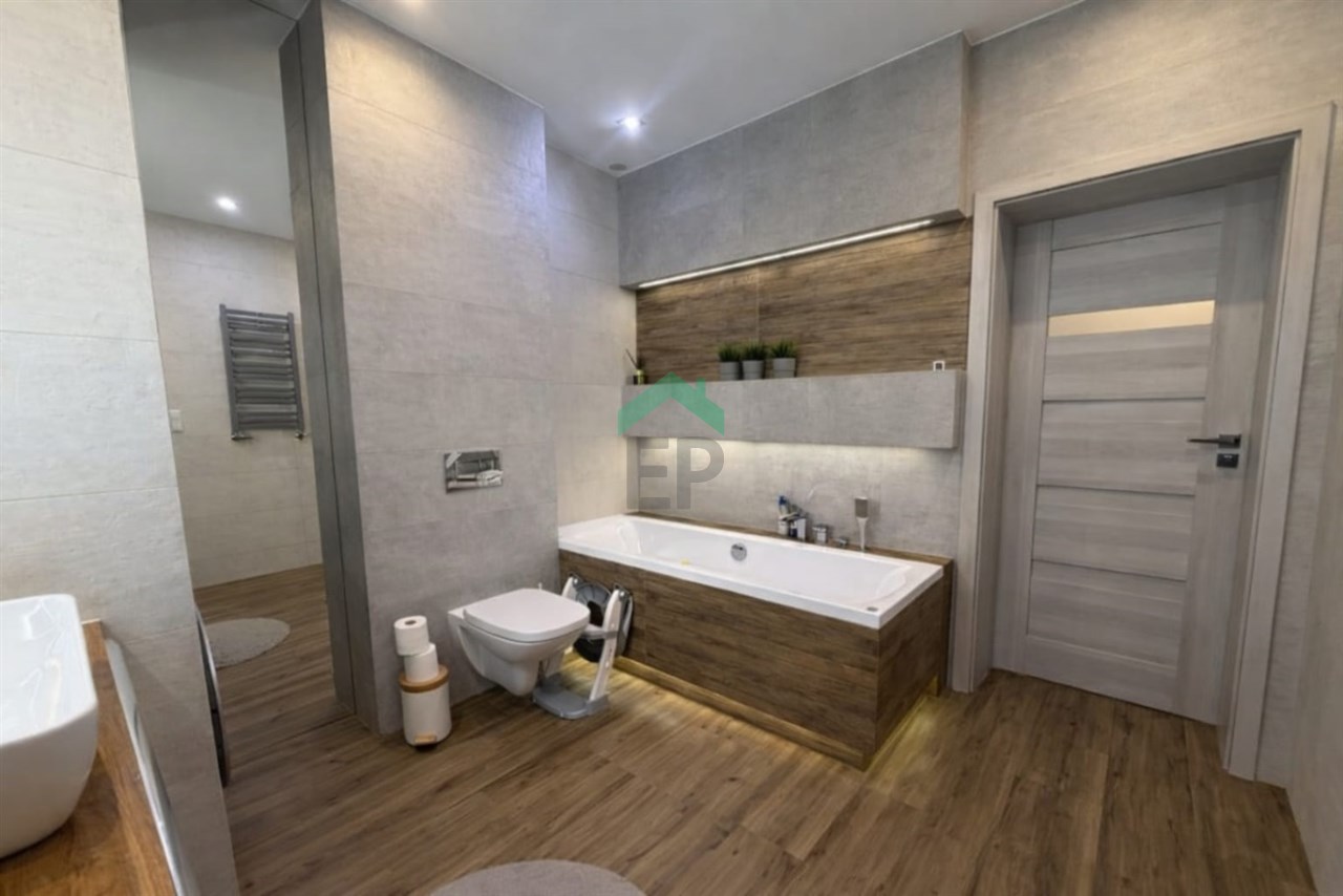 - łazienka z wanną i prysznicem,