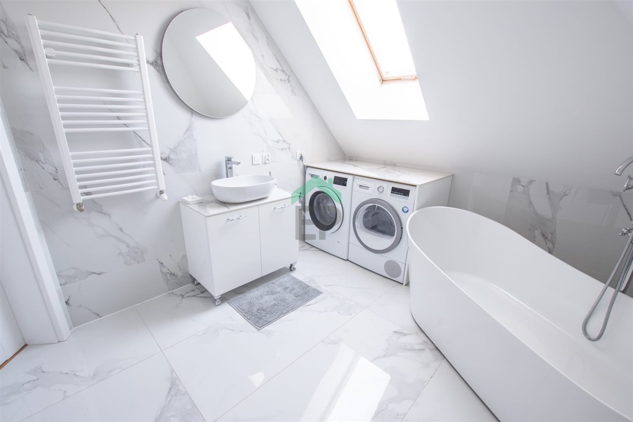 | Wyposażenie łazienki | WC, wanna, umywalka, lustro, kabina prysznicowa |