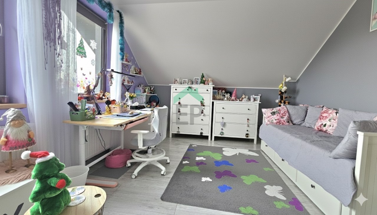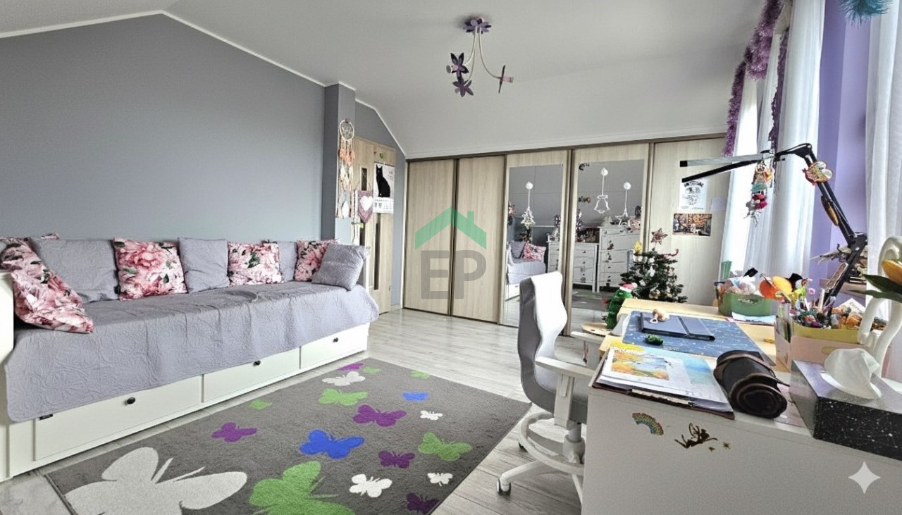 - duży pokój z szafą w zabudowie,