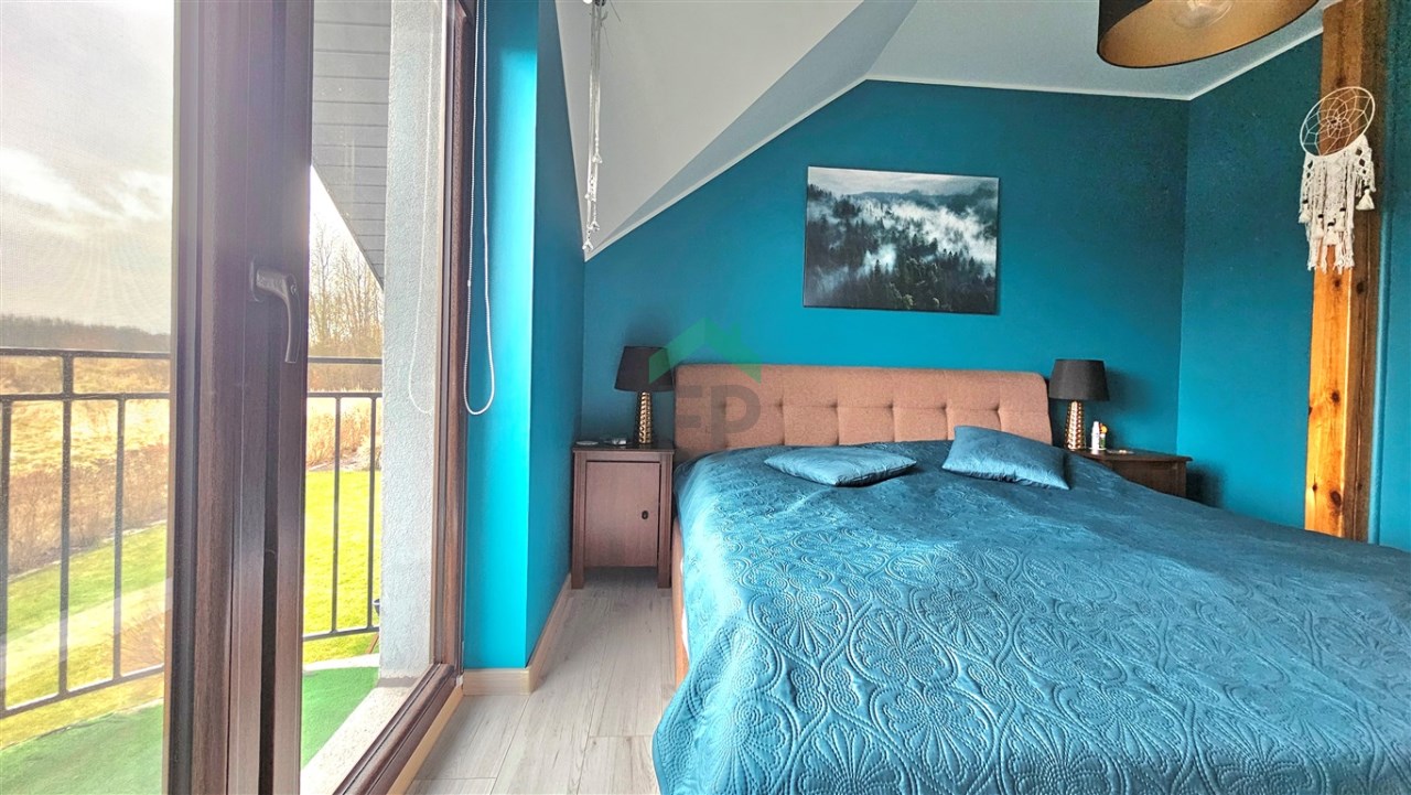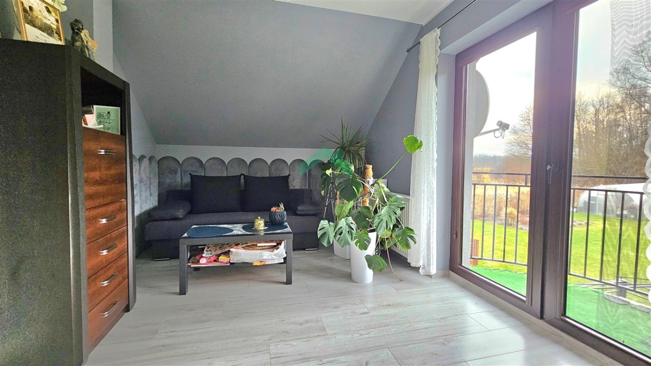 - pokój z wyjściem na balkon,