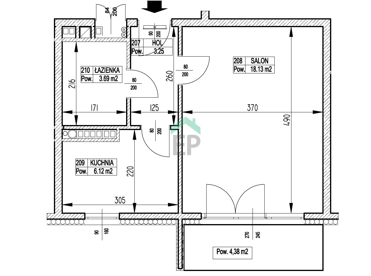 - salon z wyjściem na balkon,