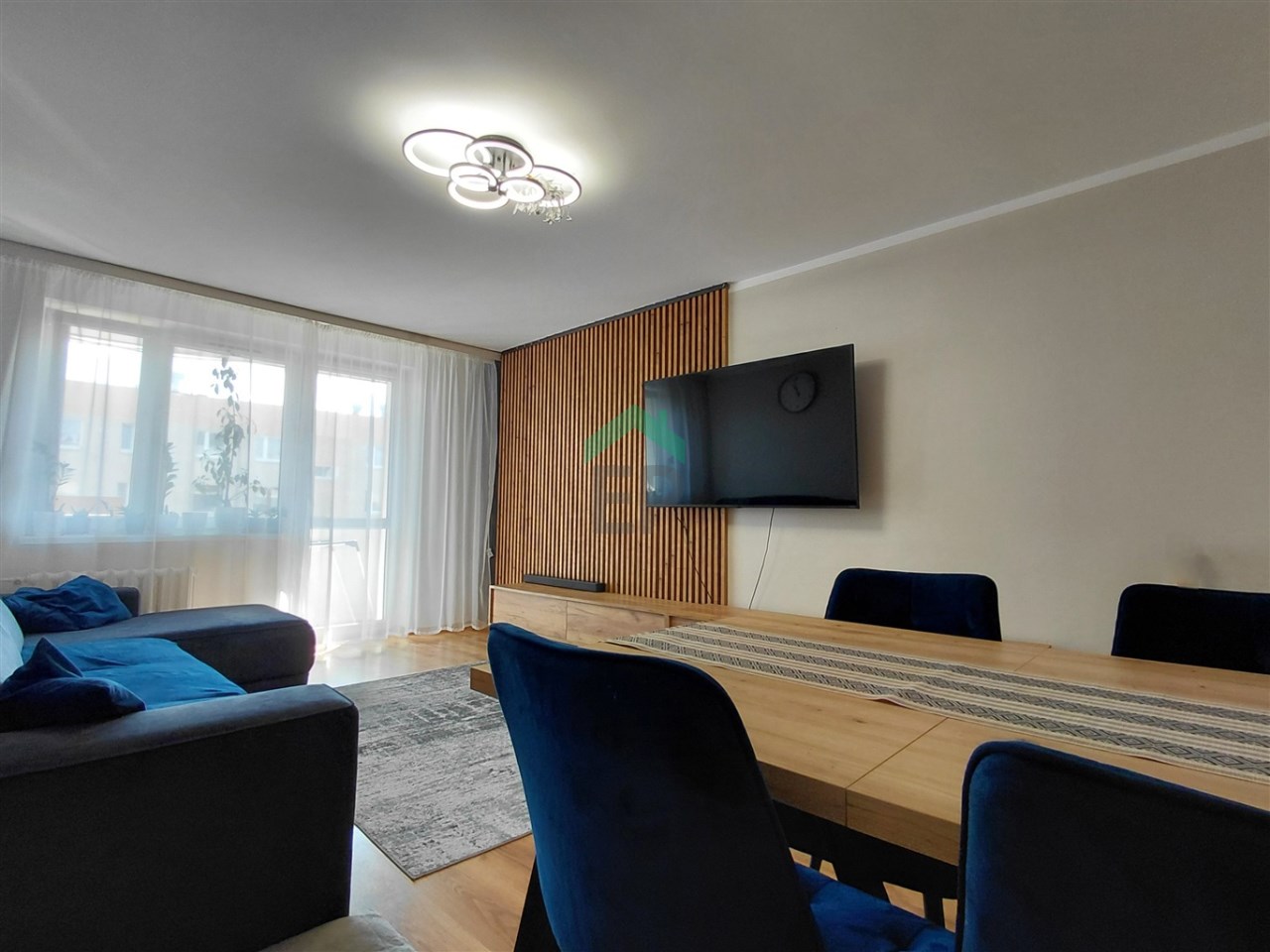 - salon z wyjściem na duży balkon,