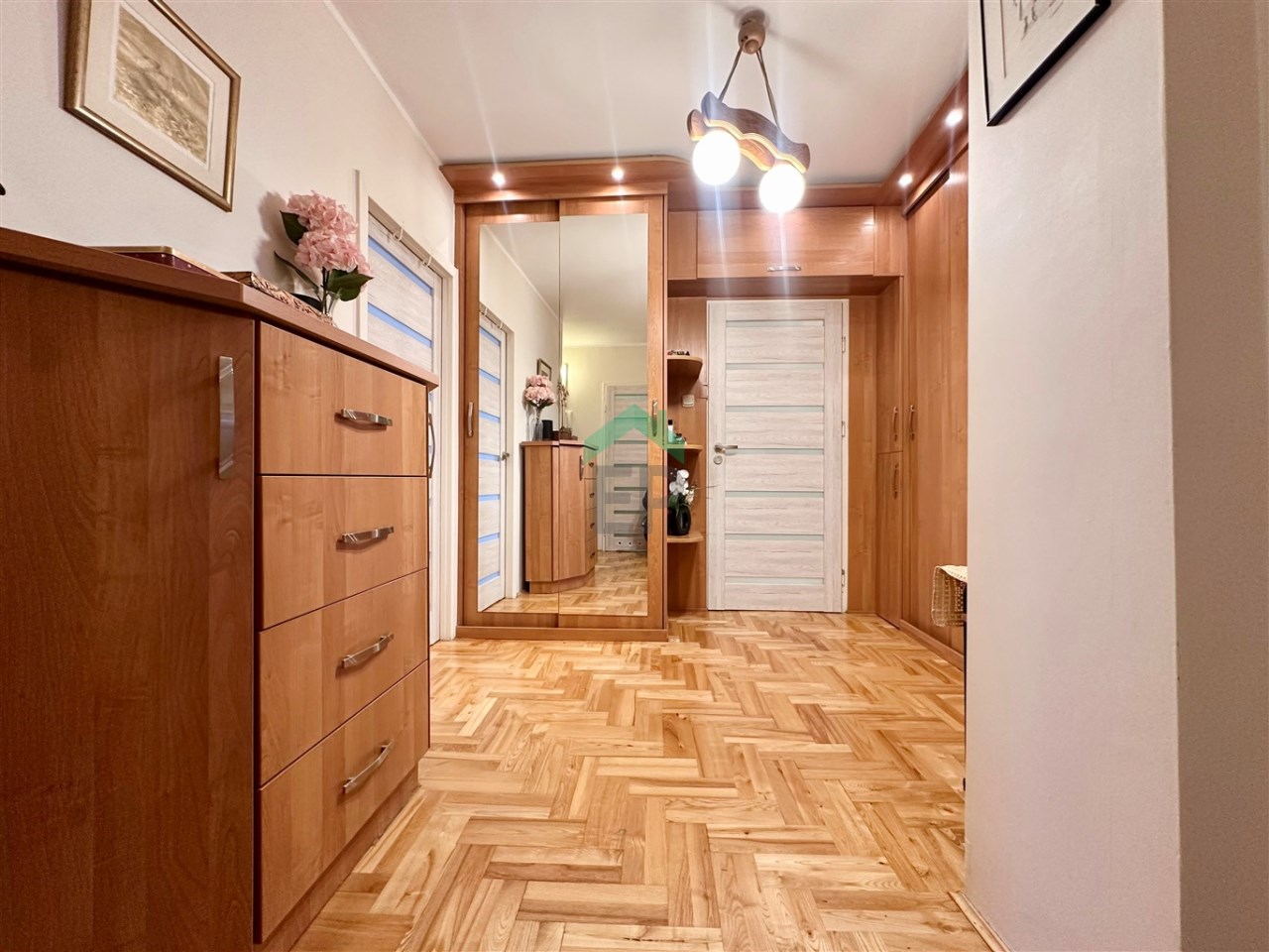 - przedpokoju z szafami w zabudowie